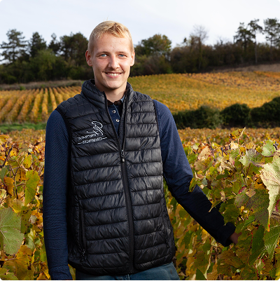 Il reprend peu à peu le flambeau d’Hervé dans les vignes, avec une grande implication dans le travail du sol, l’entretien mécanique et les décisions quotidiennes du vignoble.