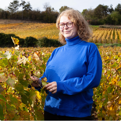 Arrivée récemment dans l’aventure familiale, Anne-Emeline s’implique dans les travaux de la vigne au fil des saisons.